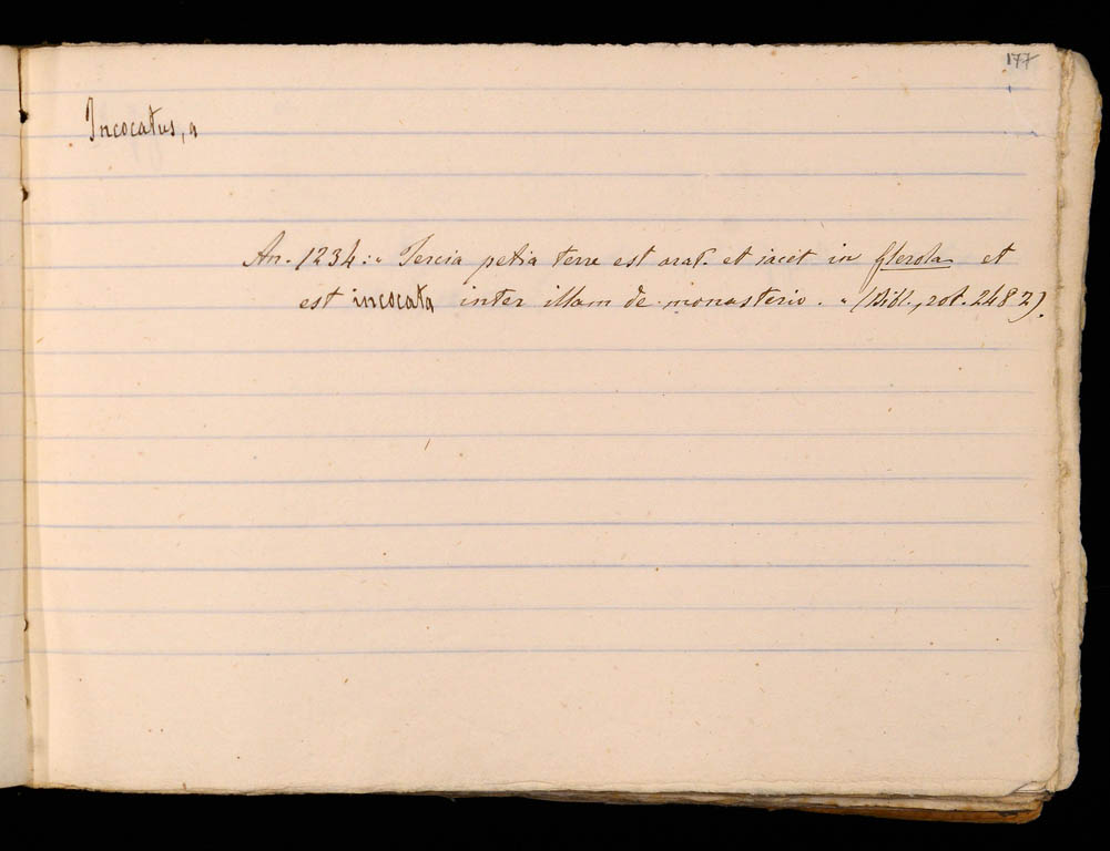 An[no] 1234: “Tertia pecia terre est arat[iva] et iacet in Glerola et est incocata inter illam de monasterio”. (Bibl[ioteca], rot[olo] 2482). [BCBg, perg. 2482]